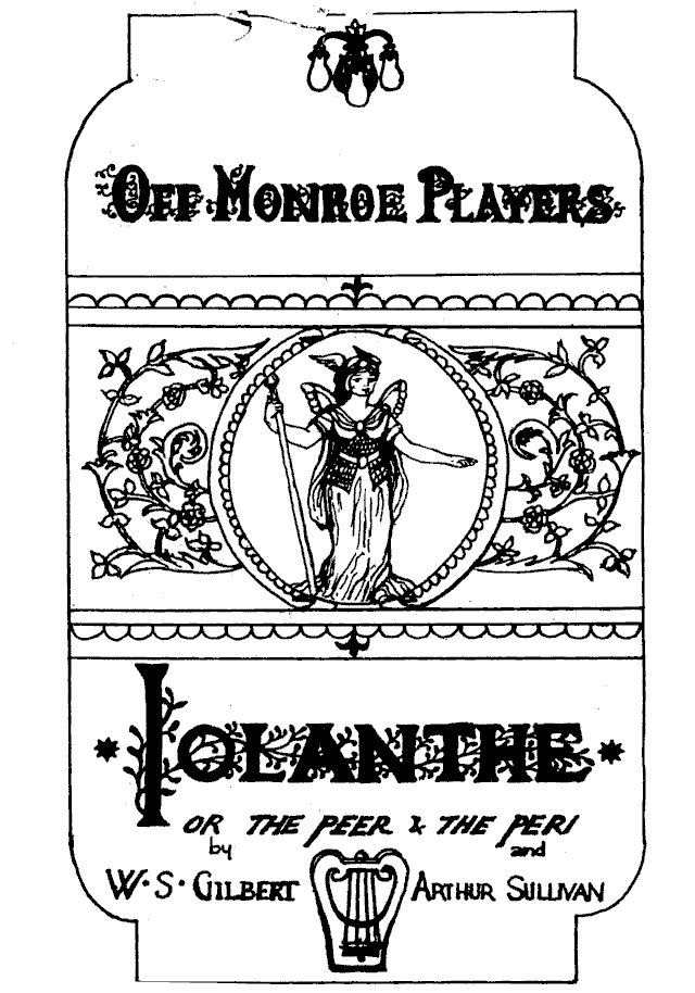 Our final performance of Iolanthe comes just three days before the 99th anniversary of its premiere at the Savoy Theatre on 25 November 1882. This "entirely original fairy opera" was the seventh collaboration between Gilbert and Sullivan and the first to open at the Savoy, which Richard D'Oyly Carte had built expressly to house the productions of the enormously successful partnership. The Savoy was the first theatre in the world to be lit by electricity, and electric light bulbs were consequently worked into the design of the original program of Iolanthe (this design is reproduced on the cover of our own program; the light bulbs may be seen near the top).