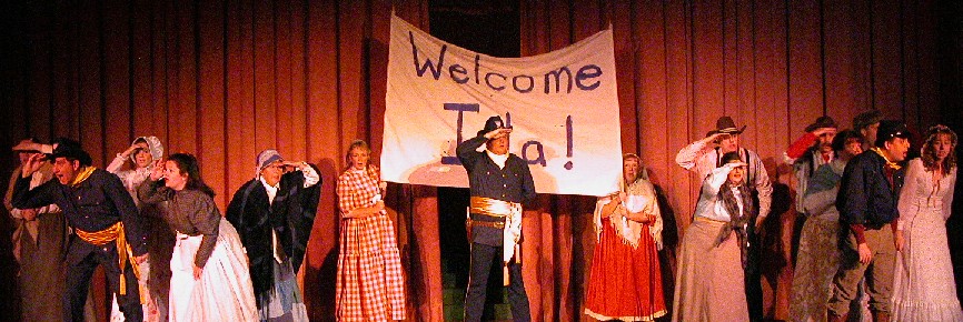 "Revision", "rethinking", and "revisal" are all terms used in much of today's musical theatre. With this production I encourage each of us to look at one of the lesser known Gilbert and Sullivan operas from a different angle. To use one of the terms stated, I would say that this production is a "rethinking." I have chosen to set the production during America's frontier "wild west" of the late 19th century. The people migrating to the west were independant souls, and besides being rather colorful, made their way outside the conventions of polite society. Ida's ideas and actions exhibit a spirit of independance that made me think of the western frontier. Ida has spunk! I put her alongside Annie Oakley, Calamity Jane and even Laura Ingalls-Wilder. As I have said to the cast and others, I only change the setting if I can maintain Gilbert's plot distinctions. In the case of Ida the castle becomes a fort, King Hildebrand, his son and court become a U.S. Cavalry outpost, and Princess Ida, her father and brothers come from Mexico. The choice of Mexico was made because of geography, a different culture and a society that still had titles, i.e. "Don" Gama.