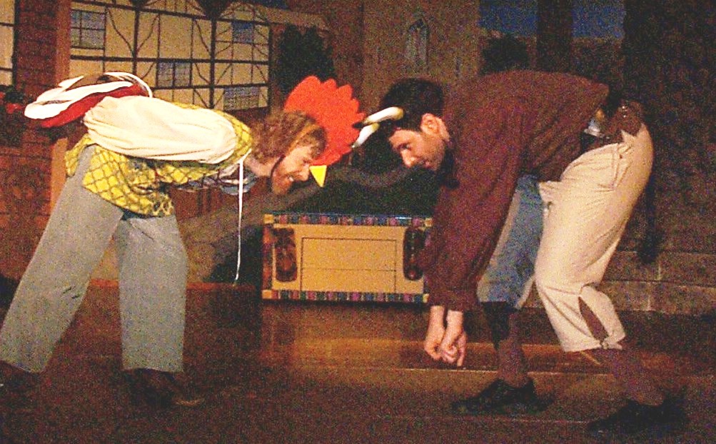 The traditional Commedia dell'arte was concerned mostly with disgraceful love intrigues (Fairfax and Elsie), clever tricks to get money (Jack Point) or outwit some simpleton (poor Wilfred). There were the long-lost children stolen by the Turks (our show's addition of the Princes in the Tower), the same plotting maids (Phoebe), bragging captains (Fairfax), aged fathers (Sgt. Meryll) and wily widows (Dame Carruthers).